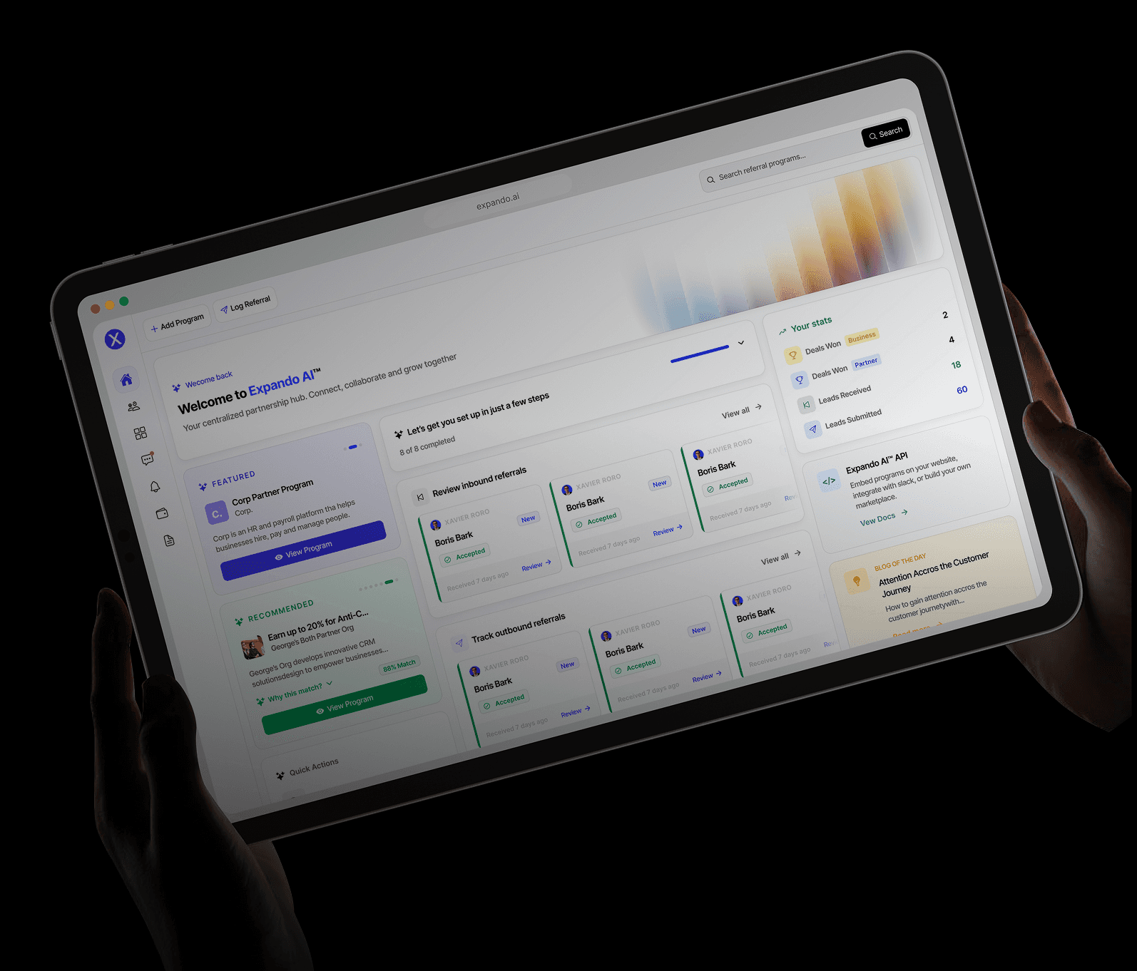 Expando AI™ is a next-gen, AI-powered referral management software that helps B2B companies onboard, manage, track and pay their partners seamlessly in any currency.